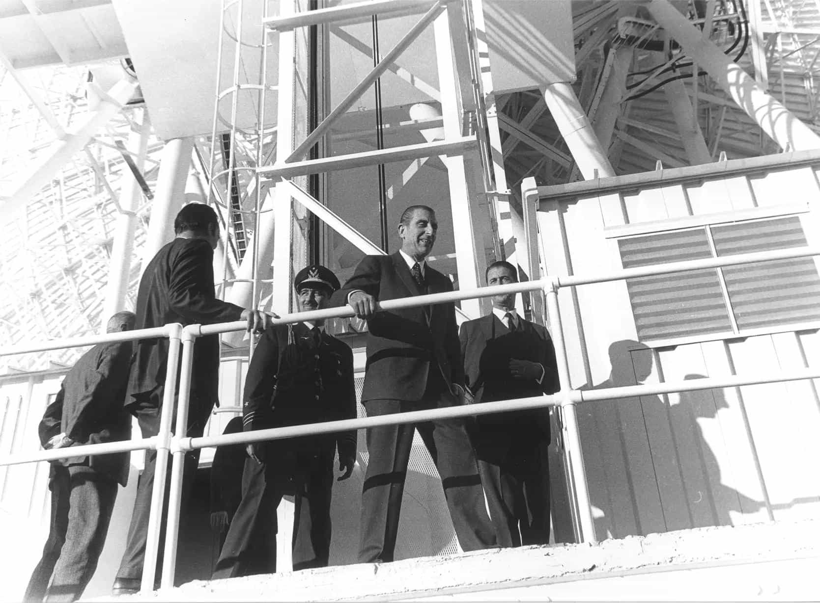 La ceremonia estuvo a cargo del presidente Eduardo Frei Montalva junto al Cardenal Raúl Silva Henríquez, autoridades civiles y tres decenas de trabajadores. La transmisión de apertura, en vivo y por señal de televisión a través del satélite Intelsat 2, fue un pie de cueca especialmente preparado desde la Embajada de Chile en Washington, Estados Unidos. El evento se transmitió por los canales de televisión de la UC, U de Chile y UCV, durante 9 minutos, y contó con discursos de James Mac Cormack, presidente jefe de COMSAT/Intelsat, y de Domingo Santa María, entonces embajador de Chile en Estados Unidos.