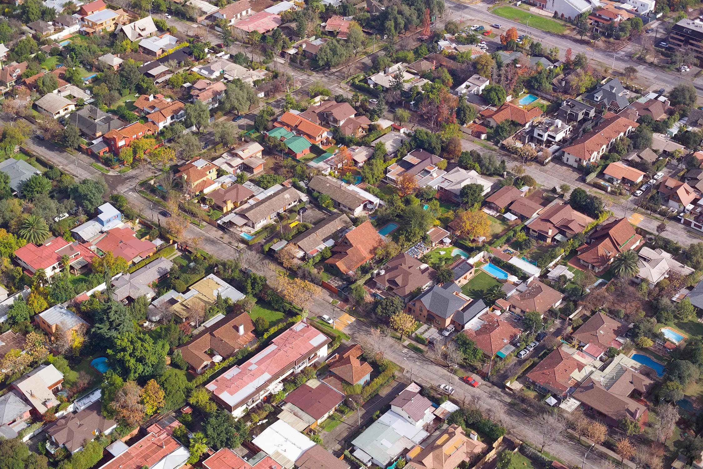 Vista aérea de Alameda con Amunátegui, el lugar elegido para la torre Fotografía: Archivo Entel